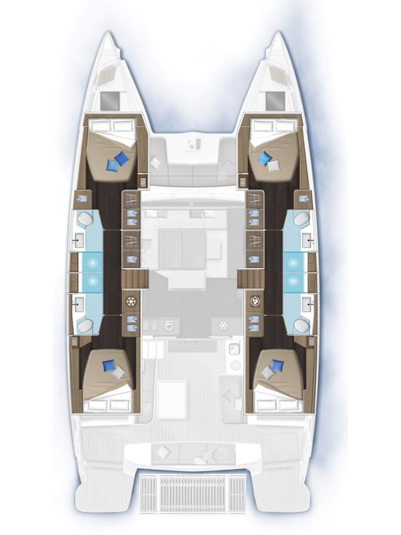 All our catamarans are Lagoon models, built by the industry-leading shipyard specializing in high-quality catamarans. They feature spacious cabins, private bathrooms, air conditioning, Wi-Fi, indoor and outdoor relaxation areas, water sports equipment, and much more.