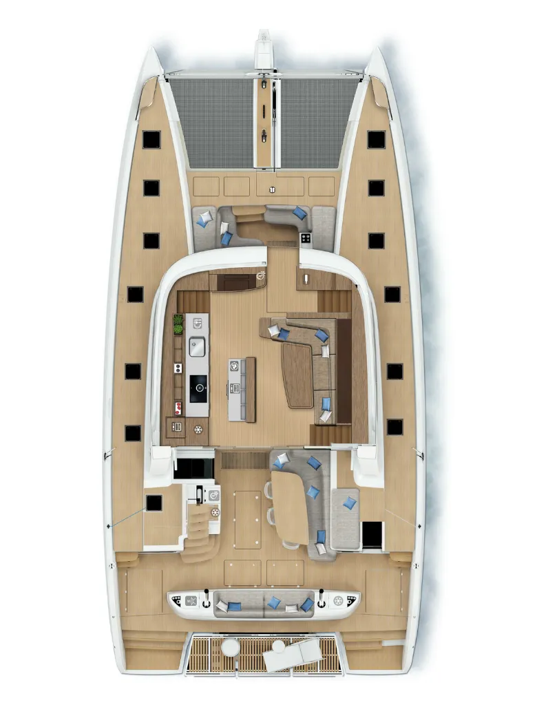 The Lagoon SIXTY 5 offers an impeccable balance of volume and grace, with wide decks, refined interiors and panoramic windows that flood the salon with natural light.