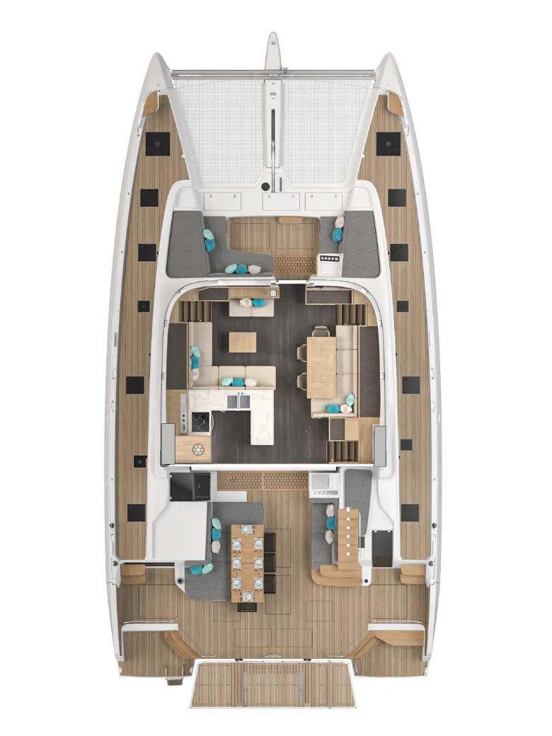 Designed to connect you with the sea, the Lagoon 60's open layout flows effortlessly between the salon, aft cockpit, and forward lounge.