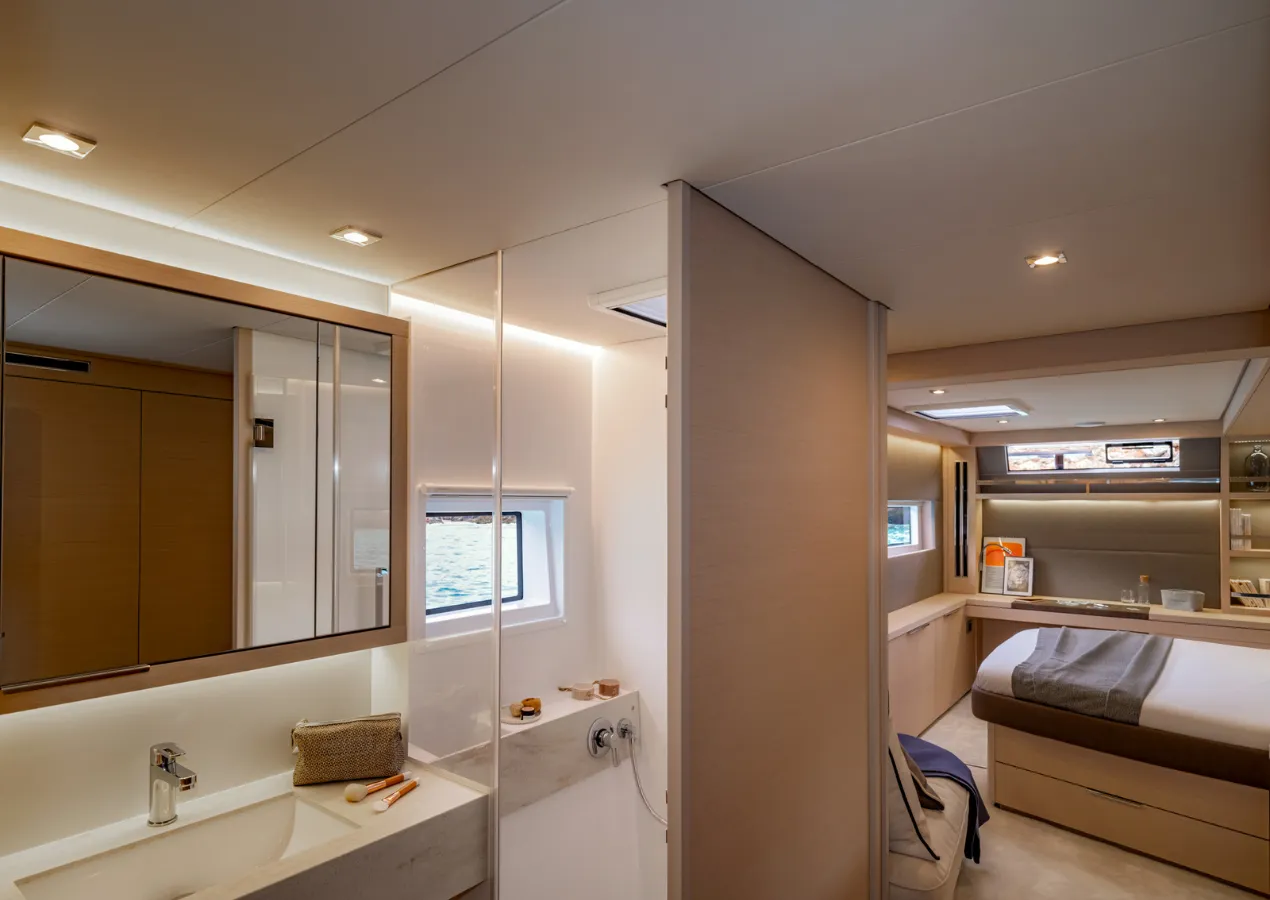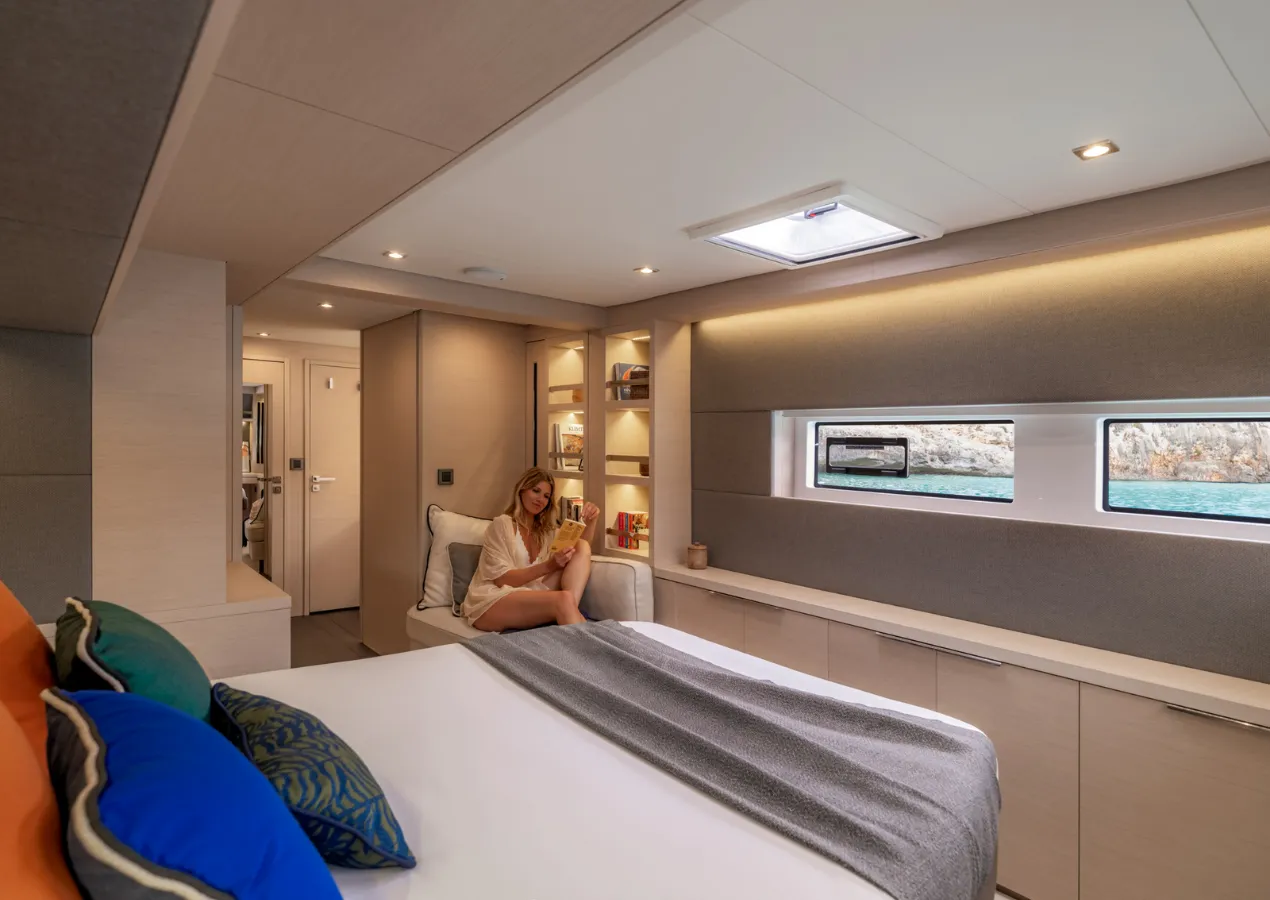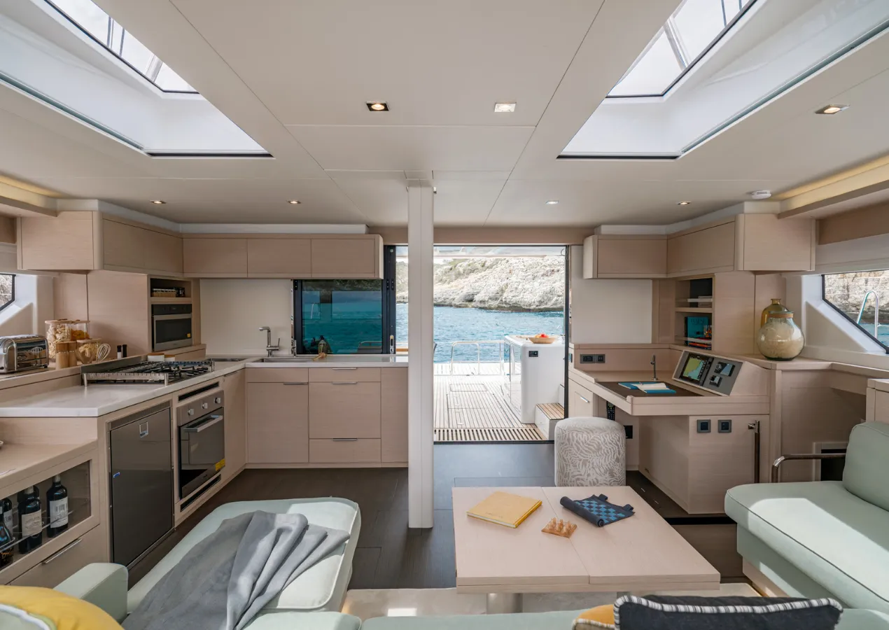 Our catamarans offer spacious lounge areas both inside and out. Relax under the sun on deck, enjoy a book in the shaded lounges, listen to music through our high-end sound systems, or sip a sunset cocktail prepared by your crew.