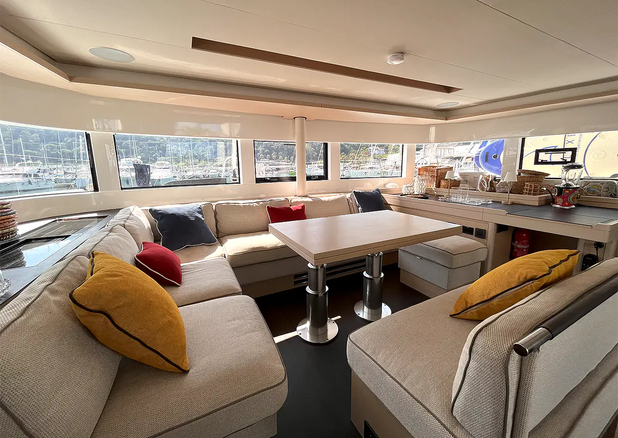 I nostri catamarani offrono ampie aree lounge sia all'interno che all'esterno. Rilassati sotto il sole sul ponte, goditi un libro nei salotti ombreggiati, ascolta la musica attraverso i nostri sistemi audio di fascia alta o sorseggia un cocktail al tramonto preparato dal tuo equipaggio.
