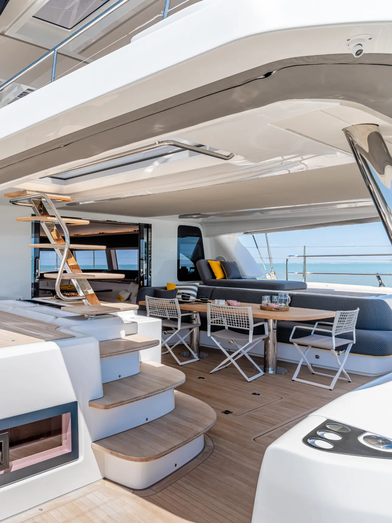 Dal flybridge al ponte di prua, ogni area scorre magnificamente nell'altra invitandoti a goderti ogni orizzonte con comfort e stile.